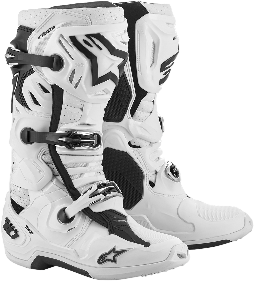 - Built into the Tech 10Â’s unique and lightweight single-piece co-injected foot chassis is the patented Dynamic Heel Compression Protector (DHCP), an innovative safety feature which includes a fully integrated collapsible heel area with expanded polyfoam to absorb high impact energies during a crash. DCHP features a directional impact protection system which significantly reduces the effect of excessive, potentially injury-causing energy being transferred to the ankle and lower leg. DHCP has been developed and tested in the demanding circuits of professional Supercross and Motocross