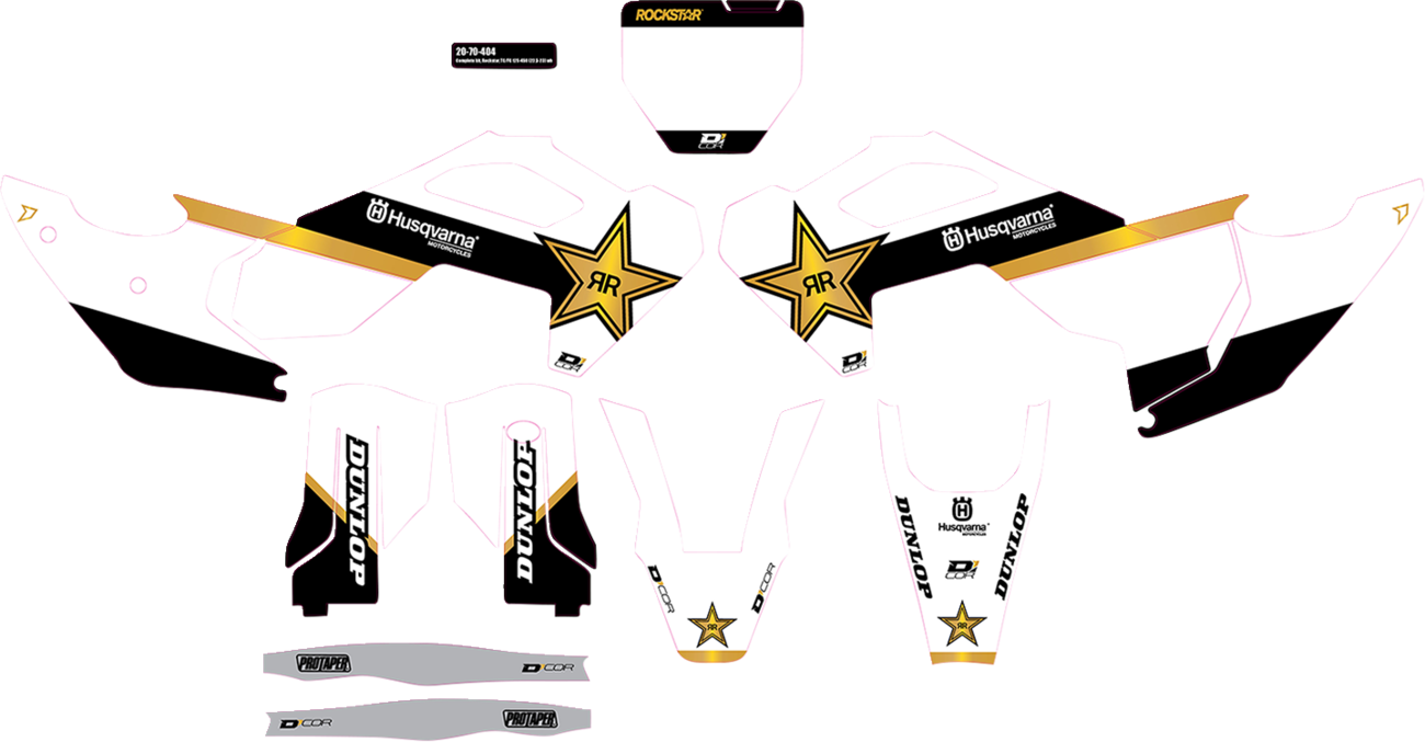 - Includes decals for radiator shrouds, tank, number plate, airbox, lower fork guards, front fender, rear fender and swingarm