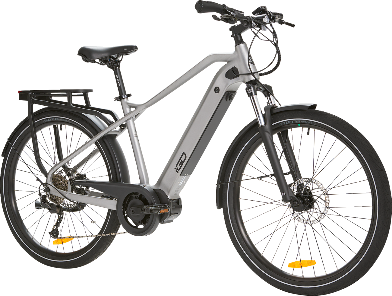 - Front LED light XC-259A (powered by main battery), Rear LED SPANNINGA LED Commuter Glow XE with brake light Integrated into rear rack (powered by main battery), Front & Rear Fenders, Rear Cargo Rack Accessory ready, Integrated Chainring Guard, Water Bottle Bosses on Seat Tube, Kickstand, Wellgo Pedals, Bell, Tool Kit, Battery Charger