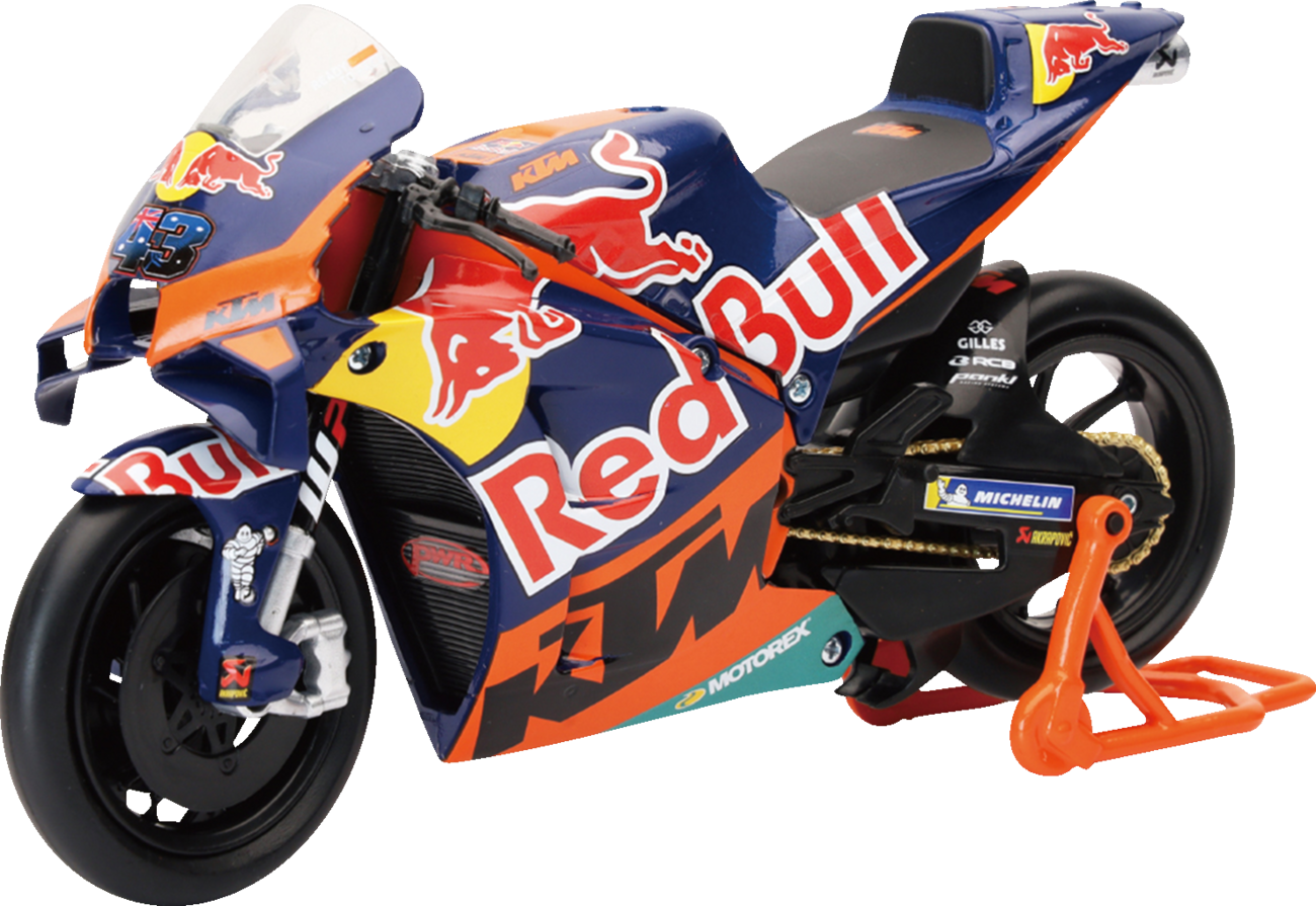 - Mini MotoGP bike features iconic Red Bull and KTM logos