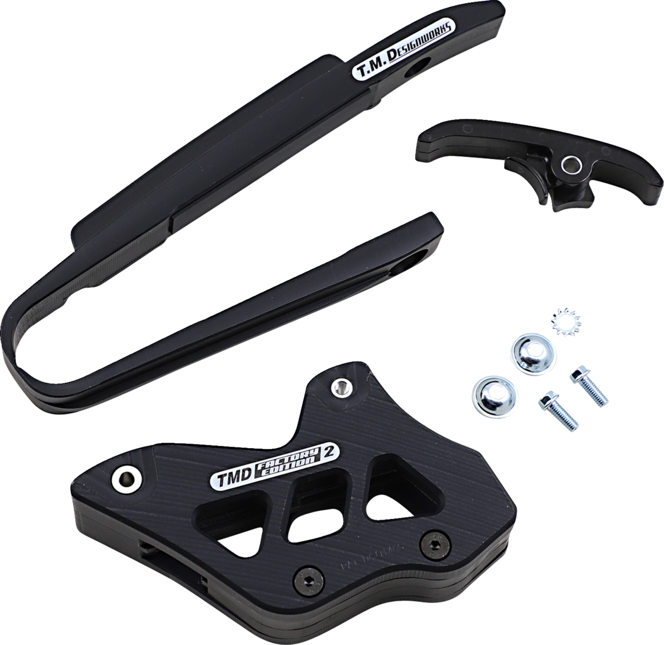 - The kit includes dirt cross chain slider, lower powerlip roller or frame pad, and rear chain guide (either factory edition #1 or #2)