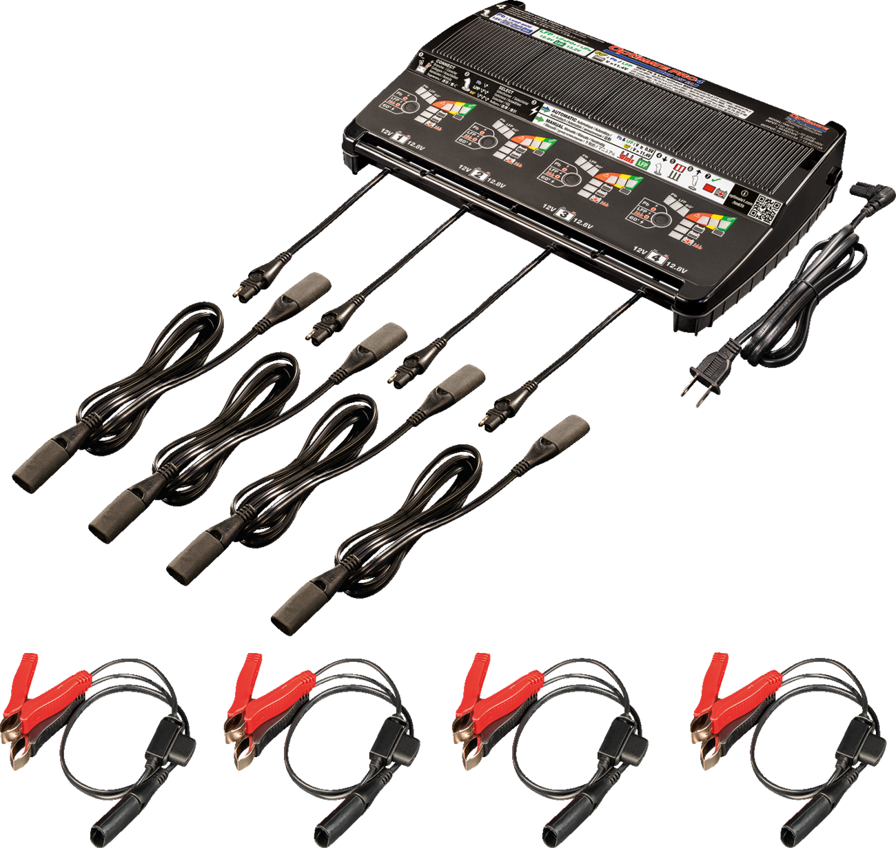 - 4 fully independent 5 A charging stations/banks, each with 3 selectable modes to service new and used powersport batteries